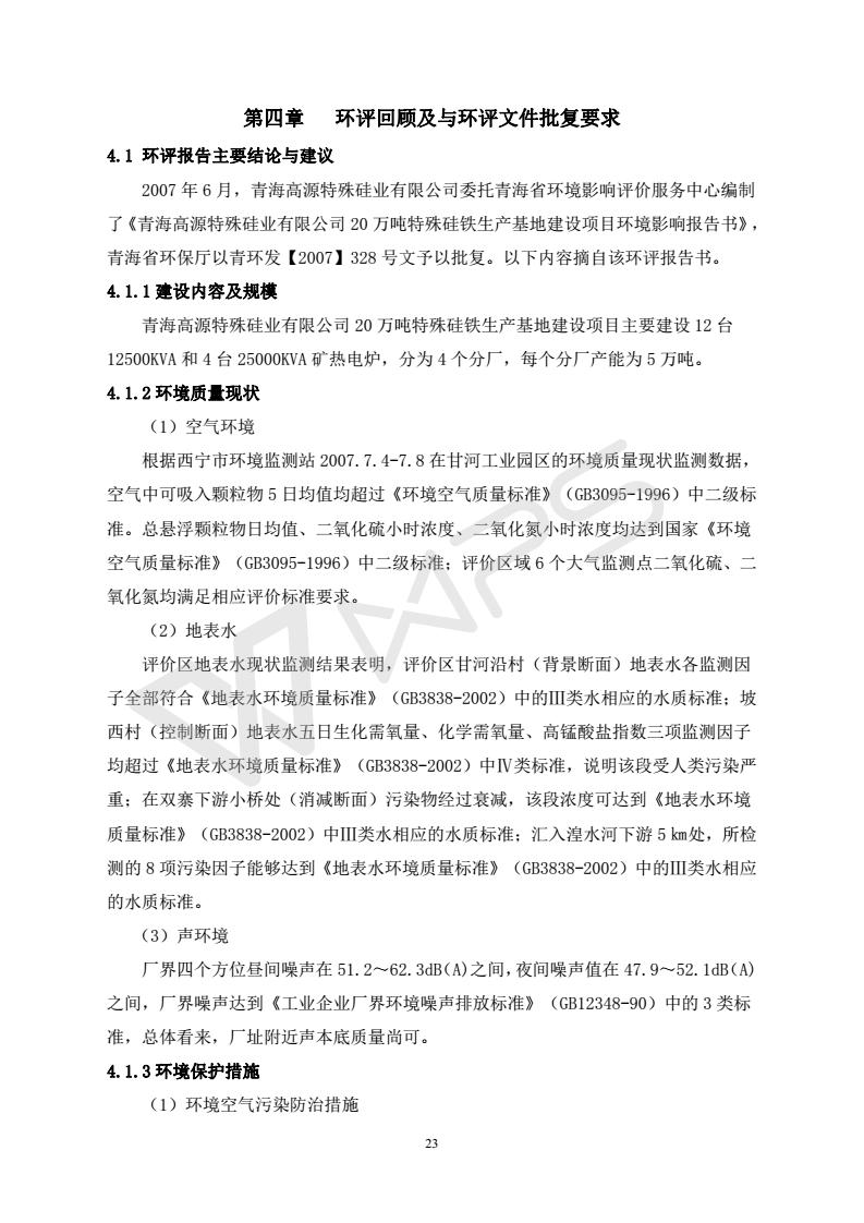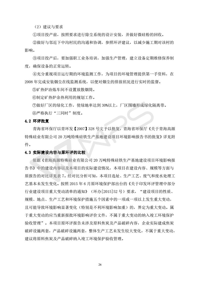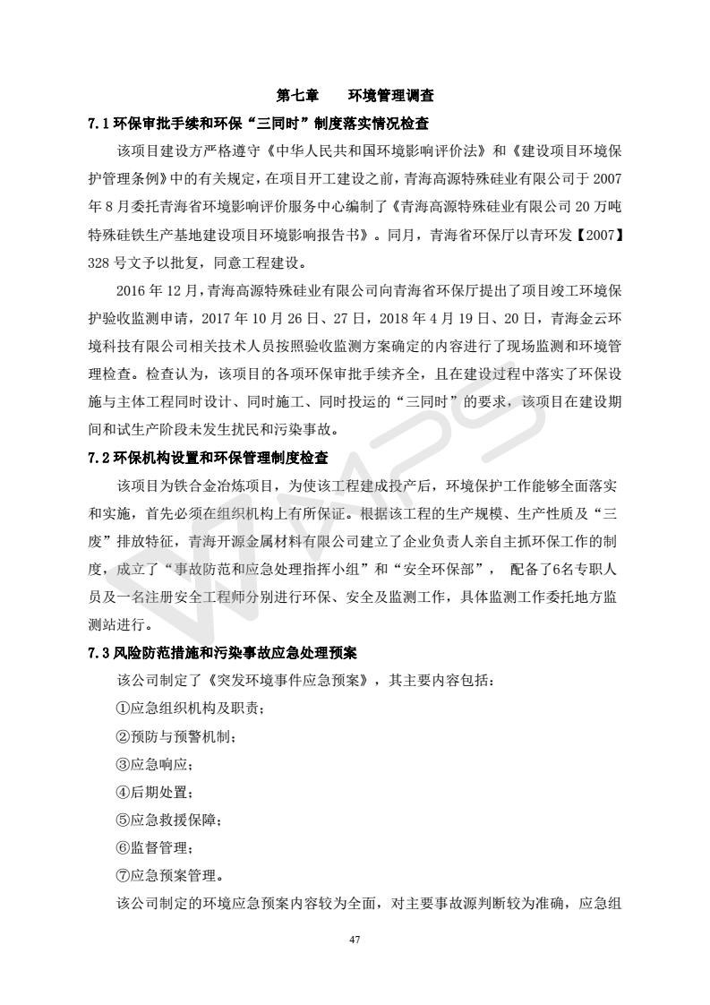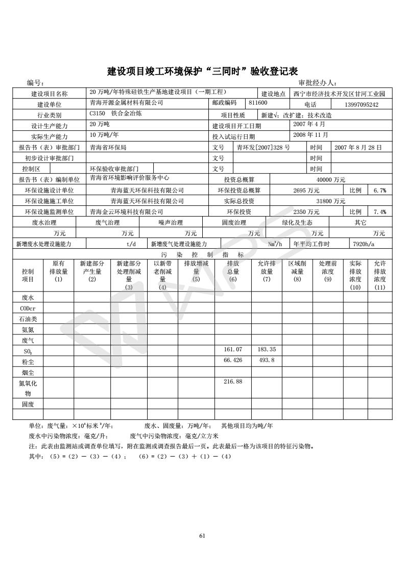 青海開源金屬材料有限公司20萬噸特殊硅鐵生產(chǎn)基地建設(shè)項目(一期工程)竣工環(huán)境保護驗收報告書會后修改20180521
