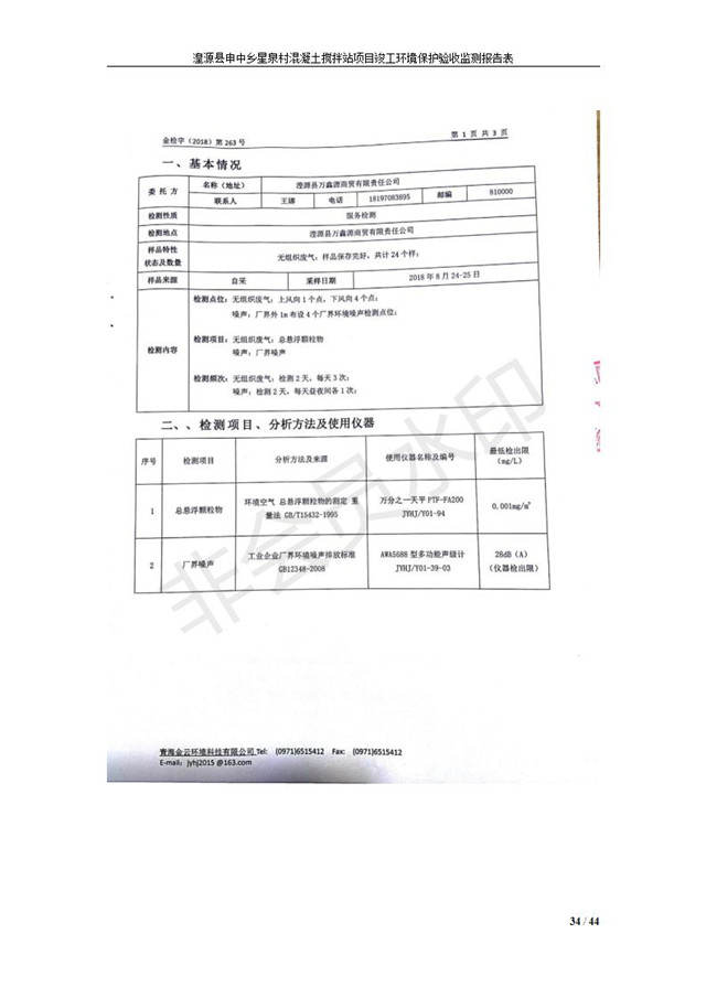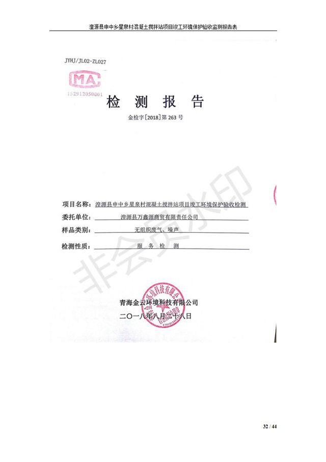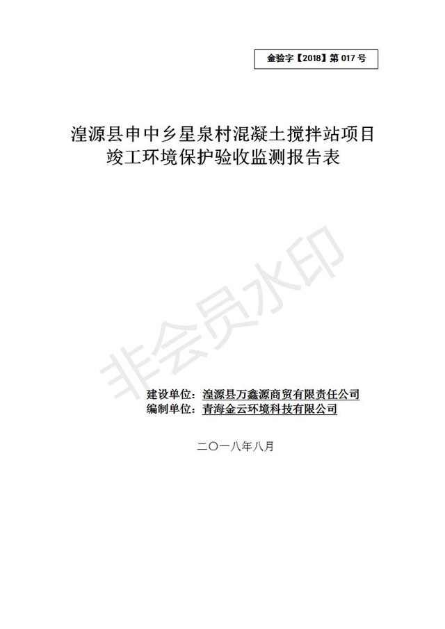 湟源縣申中鄉(xiāng)星泉村混凝土攪拌站項目竣工環(huán)境保護(hù)驗收監(jiān)測報告表公示