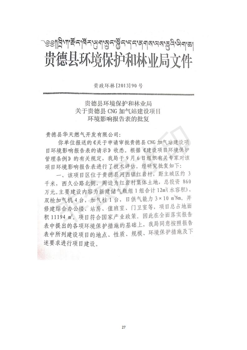 根據(jù)中華人民共和國務(wù)院令第682號《國務(wù)院關(guān)于修改〈建設(shè)項目環(huán)境保護管理條例〉的決定》和《建設(shè)項目竣工環(huán)境保護驗收暫行辦法》(國務(wù)院令682號),青藏高原特色生物資源綠色開發(fā)工程研究中心建設(shè)項目竣工環(huán)境保護驗收內(nèi)容(包括竣工環(huán)境保護驗收調(diào)查報告和驗收意見)公示如下: 一、項目名稱:貴德縣CNG加氣站建設(shè)項目 二、地點:貴德縣河西鎮(zhèn)紅巖村 三、建設(shè)單位:貴德華天燃氣開發(fā)有限公司 四、建設(shè)內(nèi)容:日供氣量為1.5×104Nm的加氣站 五、公示時間:二〇一九年五月二十九日至二〇一九年六月二十五日 六、聯(lián)系人:張工 公示期間,對上述公示內(nèi)容如有異議,請以書面形式反饋,個人須署真實姓名,單位須加蓋公章。