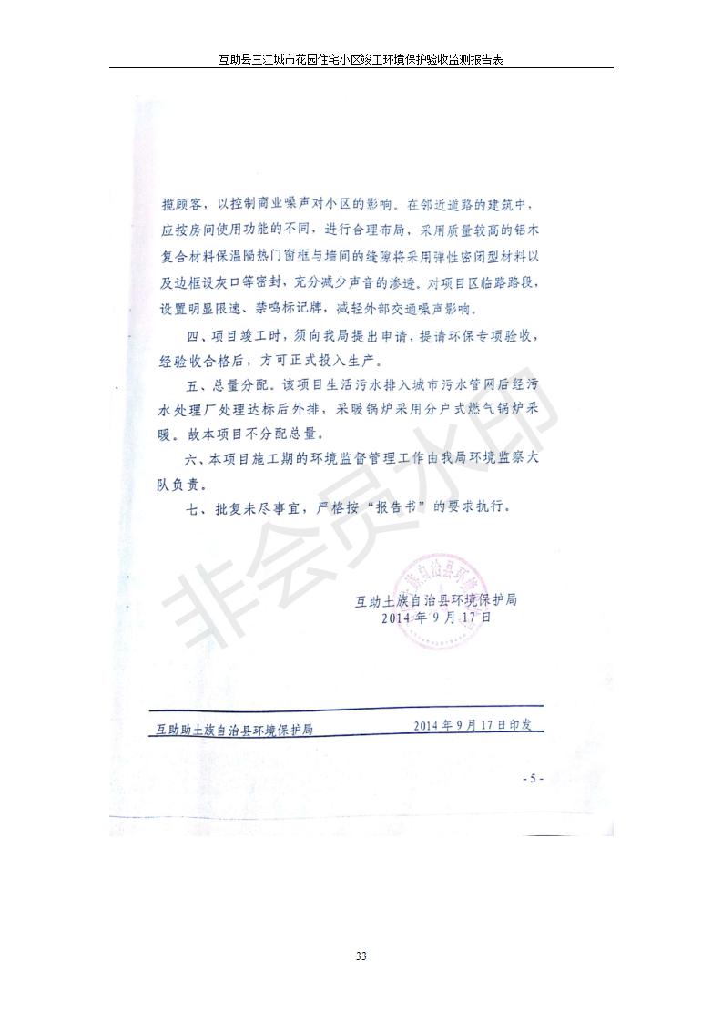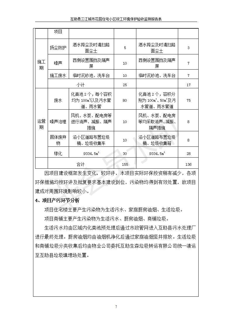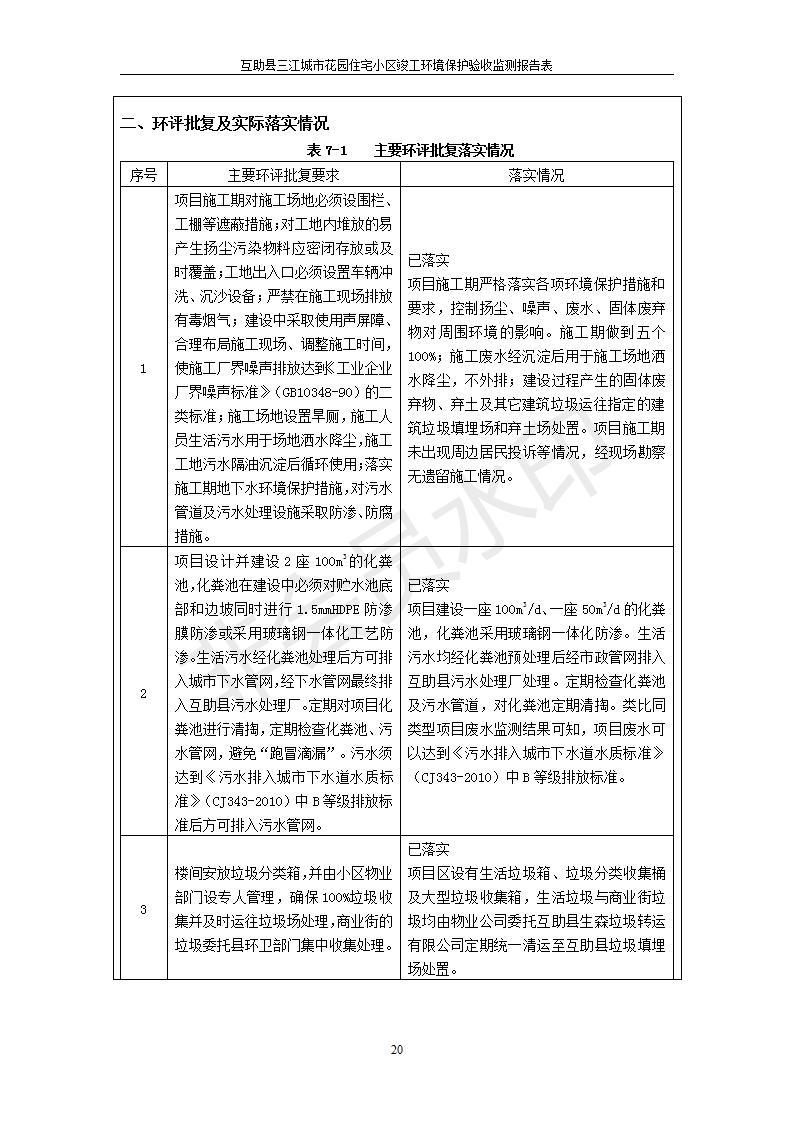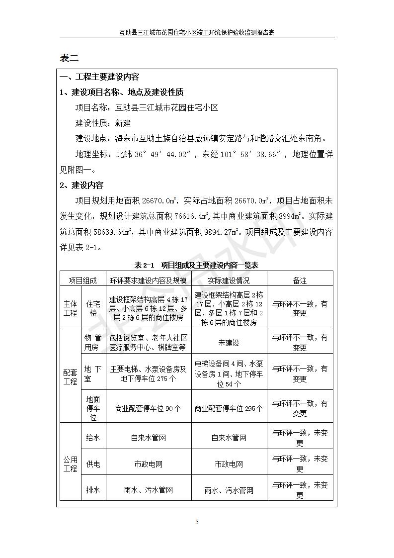 根據(jù)中華人民共和國國務(wù)院令第682號《國務(wù)院關(guān)于修改〈建設(shè)項(xiàng)目環(huán)境保護(hù)管理?xiàng)l例〉的決定》和《建設(shè)項(xiàng)目竣工環(huán)境保護(hù)驗(yàn)收暫行辦法》(國務(wù)院令682號),互助縣三江城市花園住宅小區(qū)(包括竣工環(huán)境保護(hù)驗(yàn)收監(jiān)測報告表和驗(yàn)收意見)公示如下。 一、項(xiàng)目名稱: 互助縣三江城市花園住宅小區(qū)竣工環(huán)境保護(hù)驗(yàn)收監(jiān)測報告表 二、地點(diǎn):青海省海東市互助土族自治縣威遠(yuǎn)鎮(zhèn)安定路與和諧路交匯處東南角 三、建設(shè)單位:青海三兄房地產(chǎn)開發(fā)有限公司 四、建設(shè)內(nèi)容:項(xiàng)目規(guī)劃用地面積26670.0m2,實(shí)際占地面積26670.0m2,項(xiàng)目占地面積未發(fā)生變化,規(guī)劃設(shè)計建筑總面積76616.4m2,其中商業(yè)建筑面積8994m2。實(shí)際建筑總面積58639.64m2,其中商業(yè)建筑面積9894.27m2。 五、聯(lián)系人:張工 六、聯(lián)系電 話:0971-6515411 七、公示時間:二〇一九年六月五日至二〇一九年七月三日 公示期間,對上述公示內(nèi)容如有異議,請以書面形式反饋,個人須署真實(shí)姓名,單位須加蓋公章。