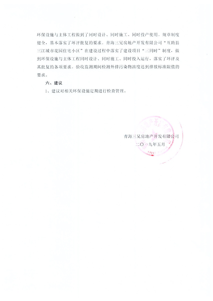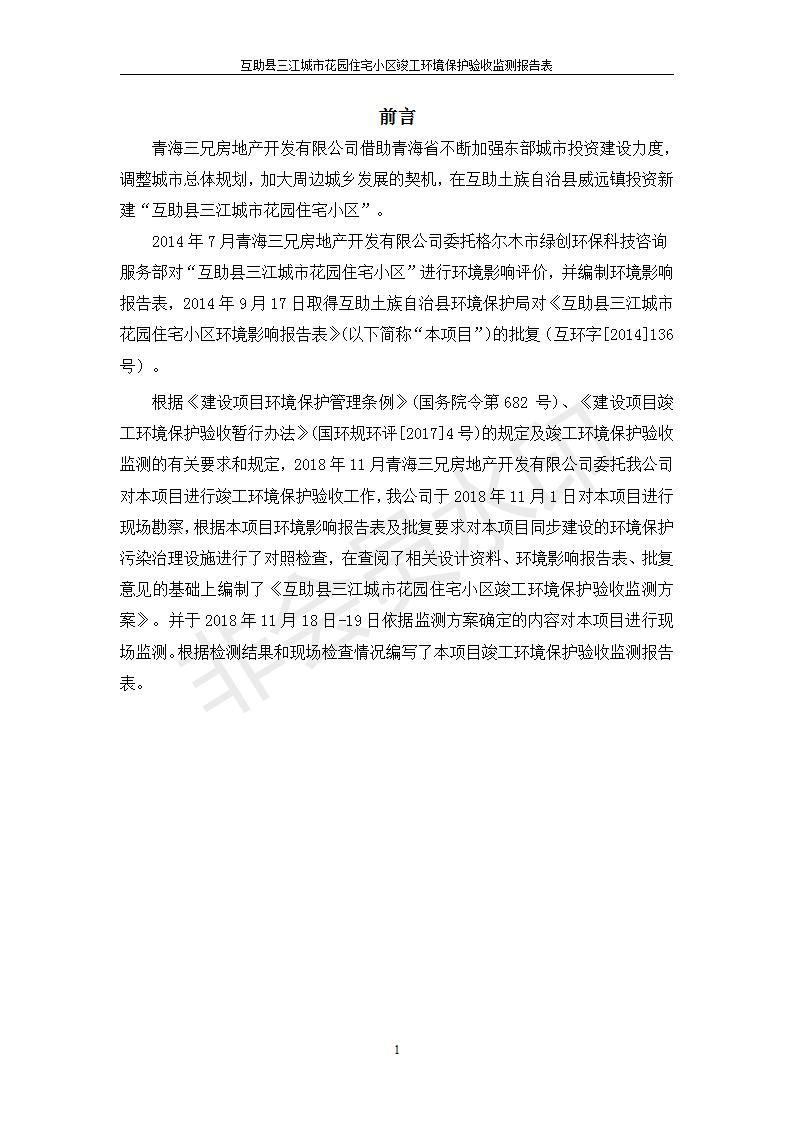 互助縣三江城市花園住宅小區(qū)竣工環(huán)境保護(hù)驗(yàn)收監(jiān)測報告表公示發(fā)布日期:(2019-6-5) 點(diǎn)擊次數(shù):2547 |