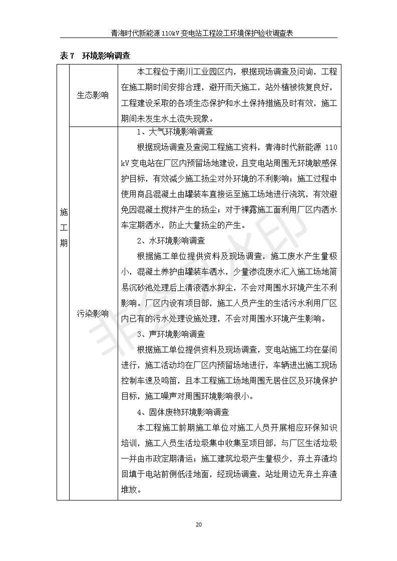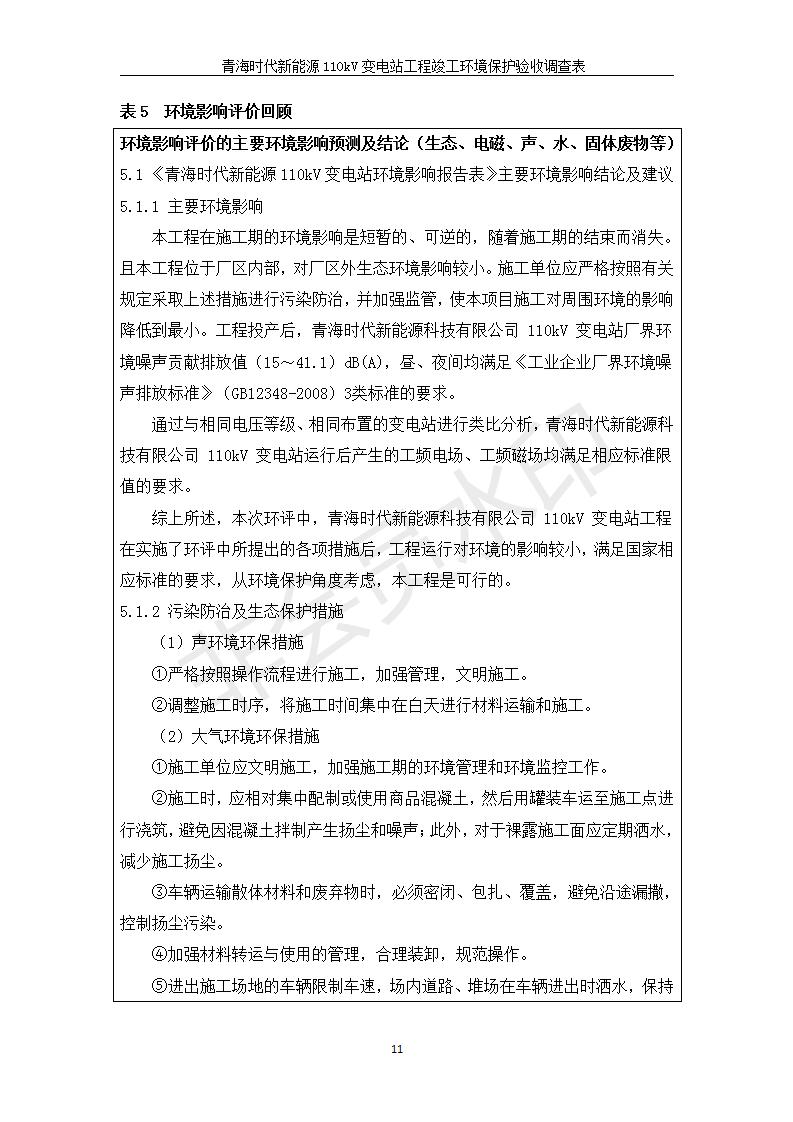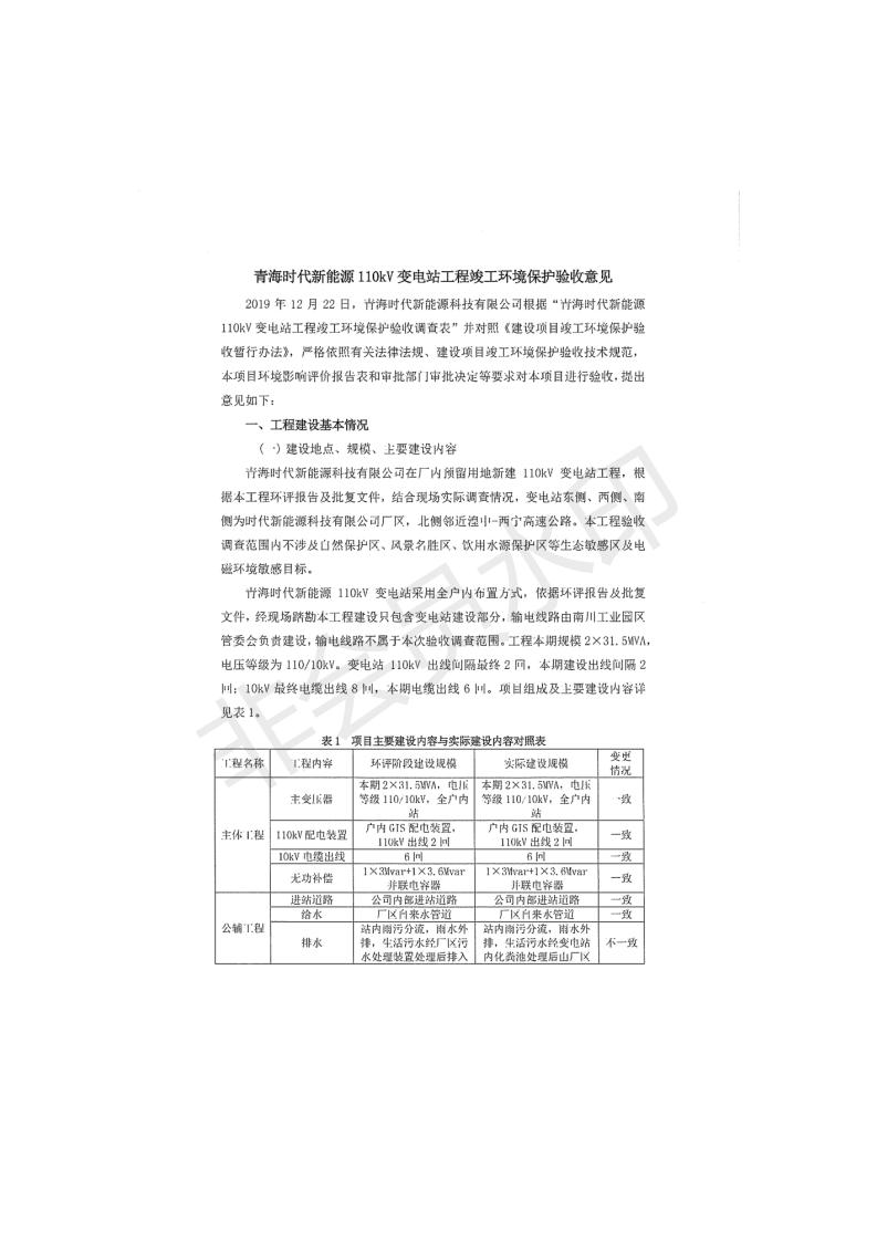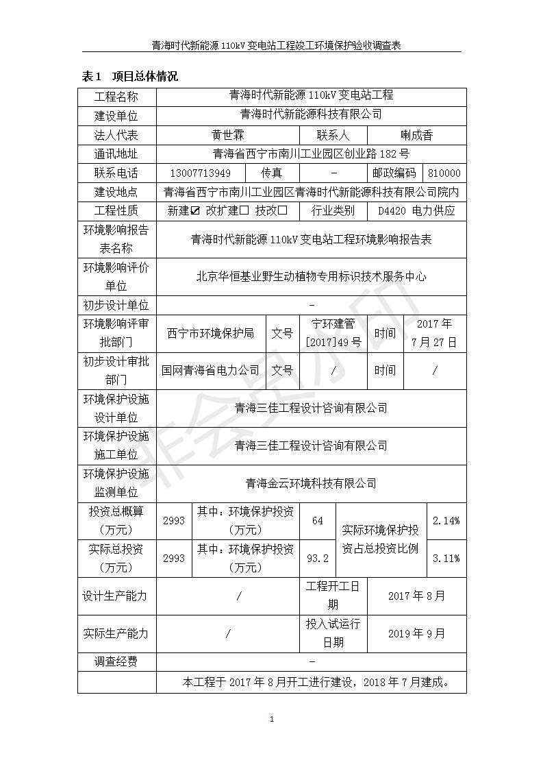 青海時(shí)代新能源110kV變電站工程竣工環(huán)境保護(hù)驗(yàn)收調(diào)查表公示發(fā)布日期:(2020-1-14) 點(diǎn)擊次數(shù):2805 |