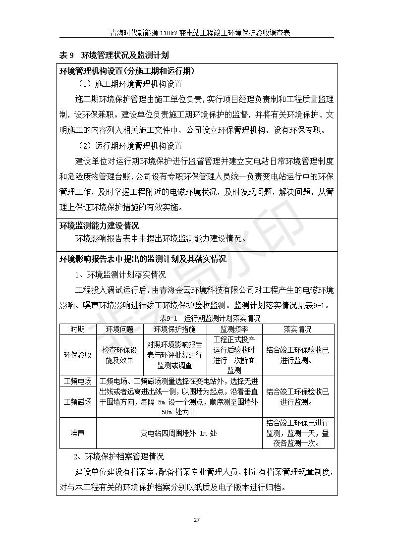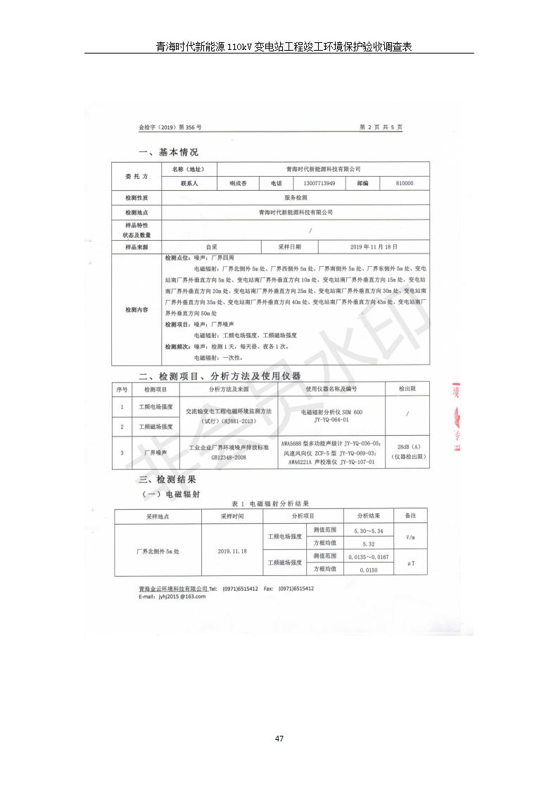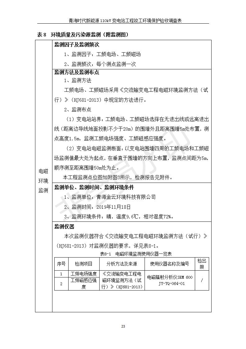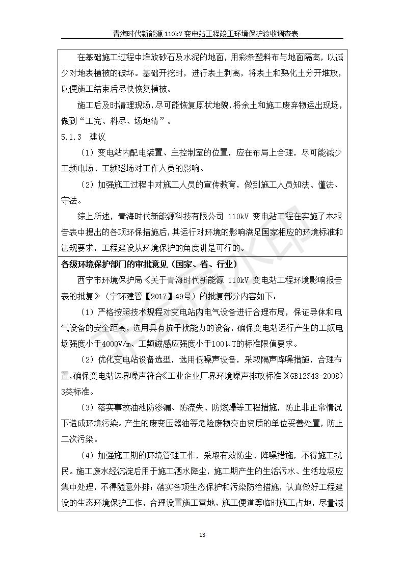 青海時(shí)代新能源110kV變電站工程竣工環(huán)境保護(hù)驗(yàn)收調(diào)查表公示發(fā)布日期:(2020-1-14) 點(diǎn)擊次數(shù):2805 |