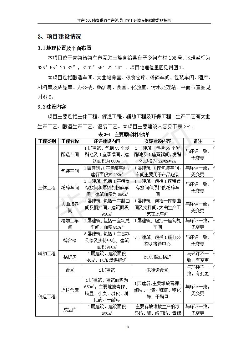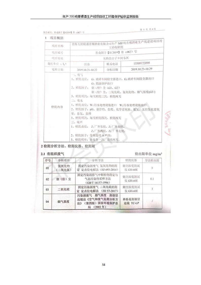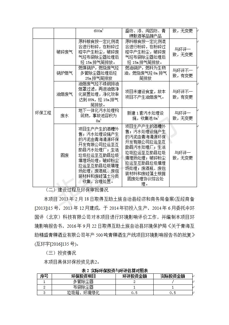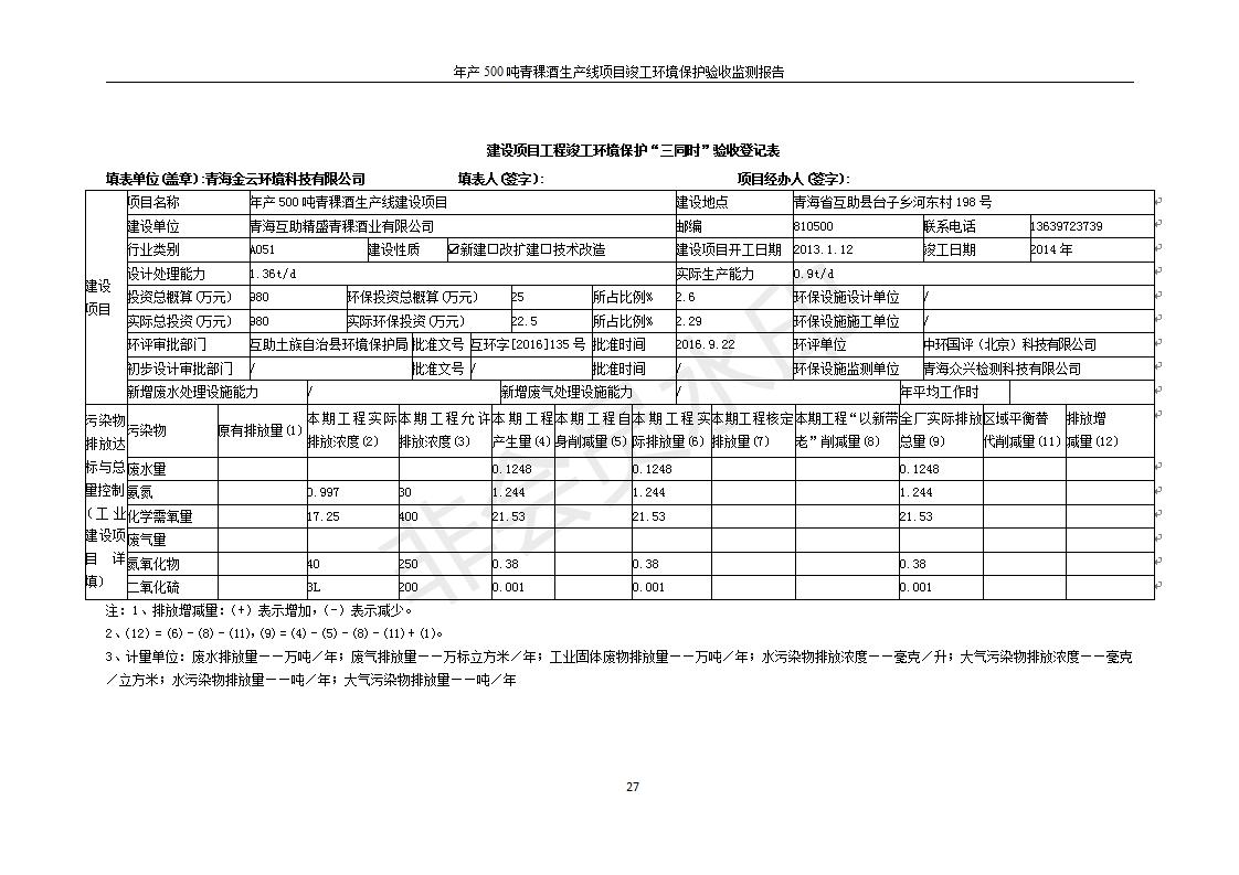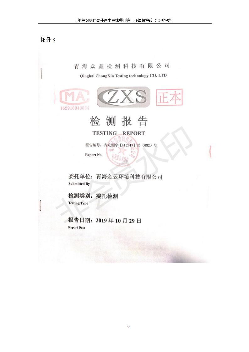 根據(jù)中華人民共和國(guó)國(guó)務(wù)院令第682號(hào)《國(guó)務(wù)院關(guān)于修改〈建設(shè)項(xiàng)目環(huán)境保護(hù)管理?xiàng)l例〉的決定》和《建設(shè)項(xiàng)目竣工環(huán)境保護(hù)驗(yàn)收暫行辦法》(國(guó)務(wù)院令682號(hào)),綜合檢測(cè)實(shí)驗(yàn)室建設(shè)項(xiàng)目(包括竣工環(huán)境保護(hù)驗(yàn)收監(jiān)測(cè)報(bào)告表和驗(yàn)收意見(jiàn))公示如下。 一、項(xiàng)目名稱(chēng):青;ブ⑶囡茦I(yè)有限公司年產(chǎn)500噸青稞酒業(yè)生產(chǎn)線建設(shè)項(xiàng)目 二、地點(diǎn):青海省海東市互助土族自治縣臺(tái)子鄉(xiāng)河?xùn)|村198號(hào)