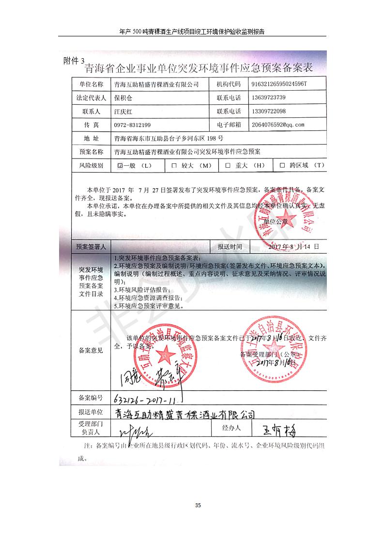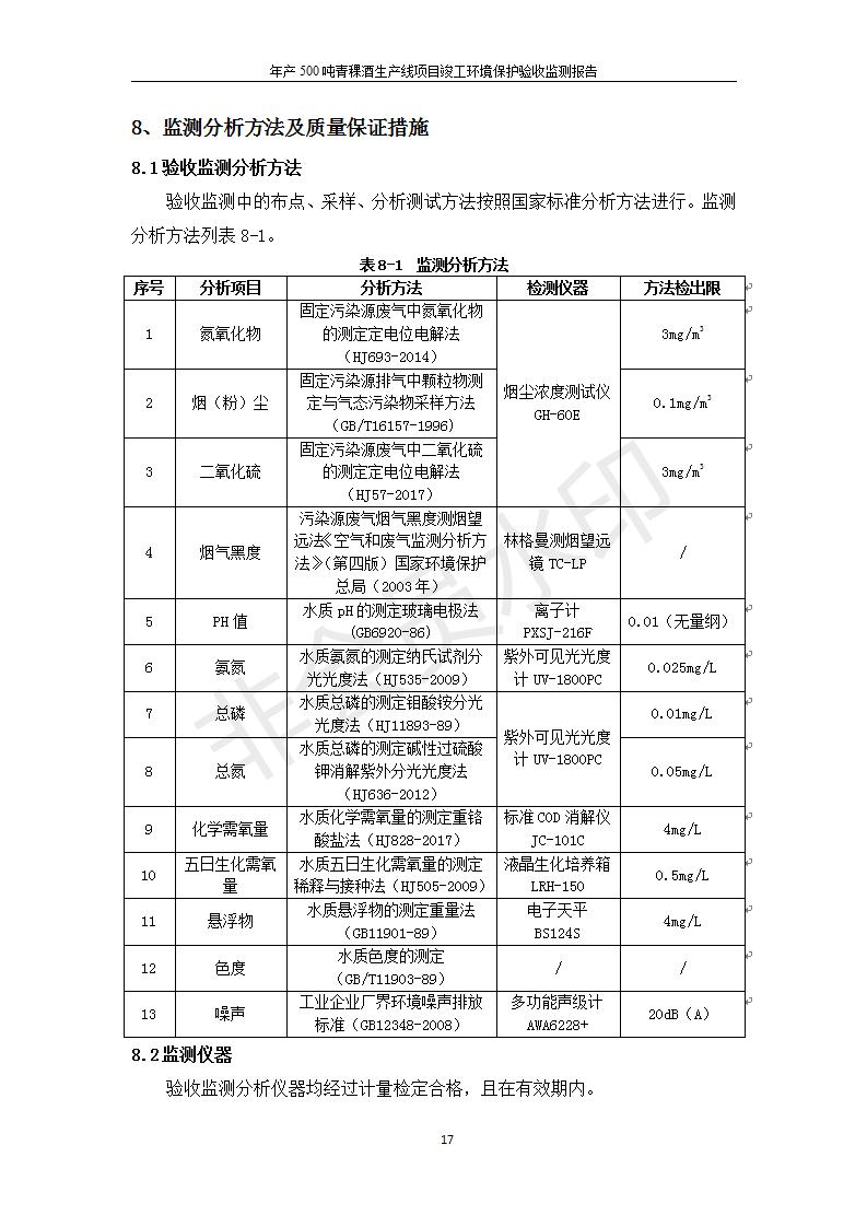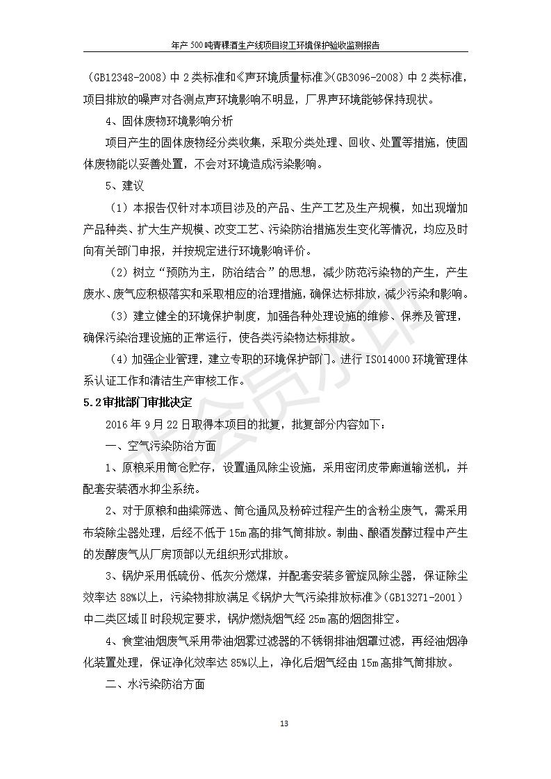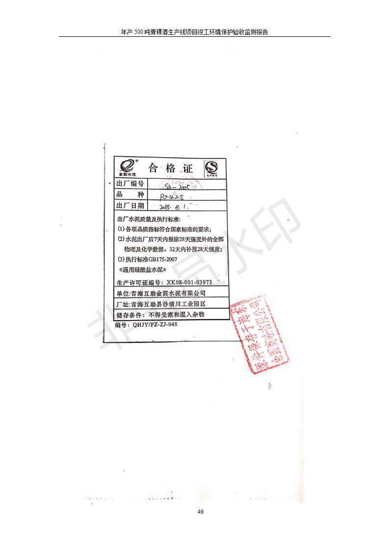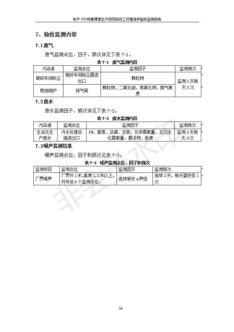 根據(jù)中華人民共和國(guó)國(guó)務(wù)院令第682號(hào)《國(guó)務(wù)院關(guān)于修改〈建設(shè)項(xiàng)目環(huán)境保護(hù)管理?xiàng)l例〉的決定》和《建設(shè)項(xiàng)目竣工環(huán)境保護(hù)驗(yàn)收暫行辦法》(國(guó)務(wù)院令682號(hào)),綜合檢測(cè)實(shí)驗(yàn)室建設(shè)項(xiàng)目(包括竣工環(huán)境保護(hù)驗(yàn)收監(jiān)測(cè)報(bào)告表和驗(yàn)收意見(jiàn))公示如下。 一、項(xiàng)目名稱(chēng):青;ブ⑶囡茦I(yè)有限公司年產(chǎn)500噸青稞酒業(yè)生產(chǎn)線建設(shè)項(xiàng)目 二、地點(diǎn):青海省海東市互助土族自治縣臺(tái)子鄉(xiāng)河?xùn)|村198號(hào)
