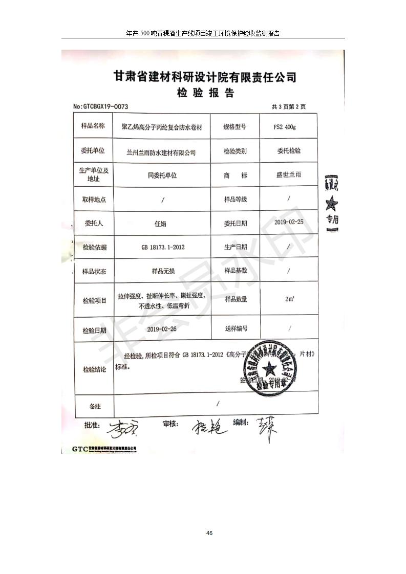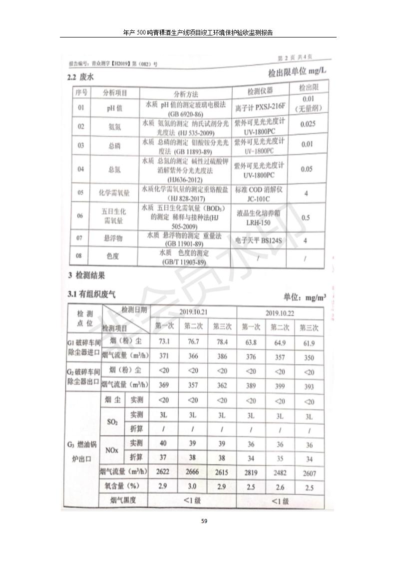 青;ブ⑶囡茦I(yè)有限公司年產(chǎn)500噸青稞酒業(yè)生產(chǎn)線建設(shè)項(xiàng)目竣工環(huán)境保護(hù)驗(yàn)收監(jiān)測(cè)報(bào)告表公示發(fā)布日期:(2020-4-27) 點(diǎn)擊次數(shù):2576 |