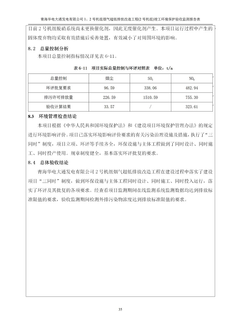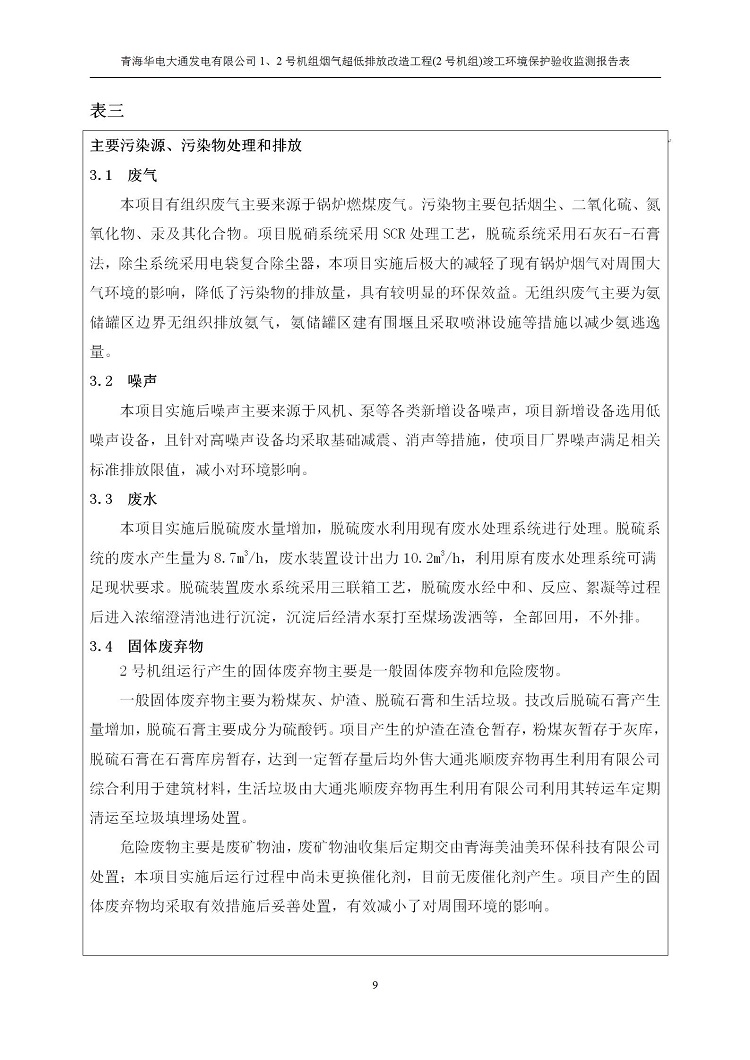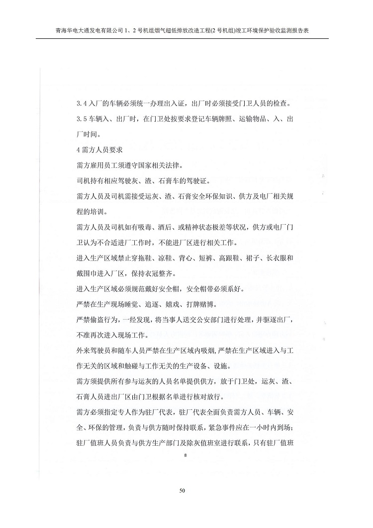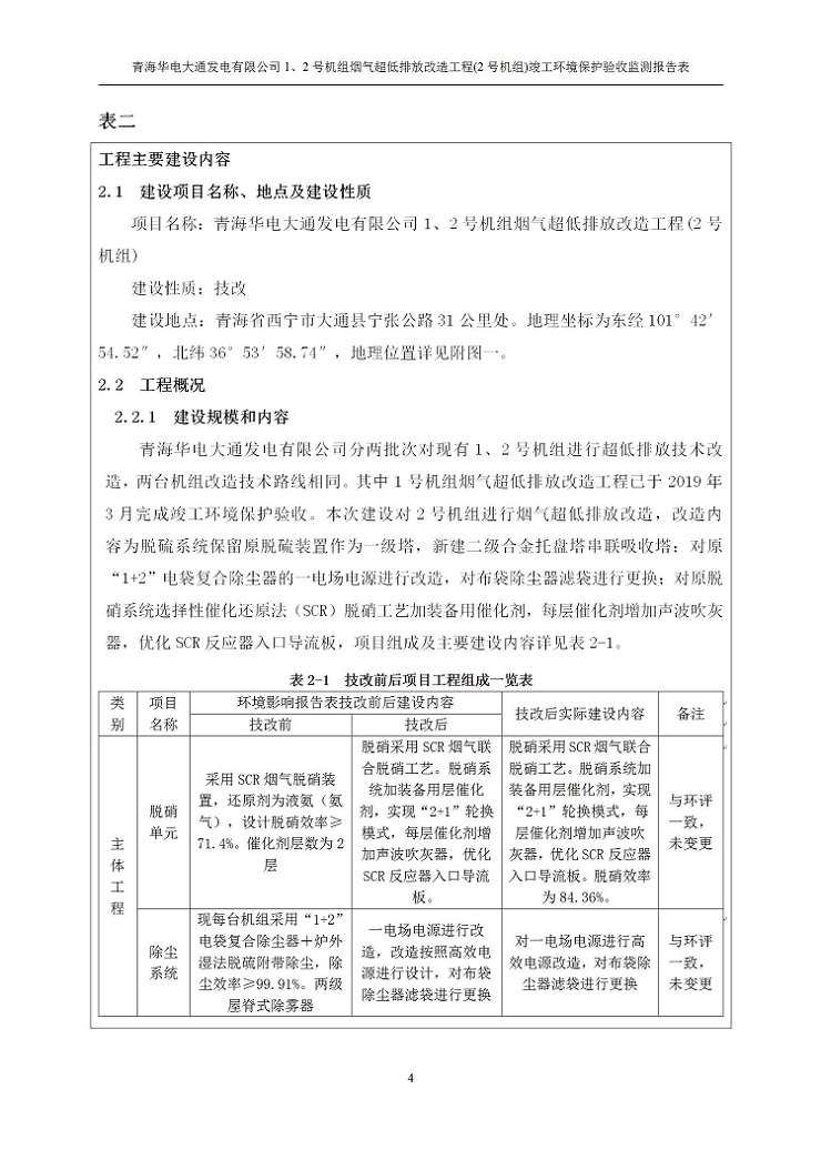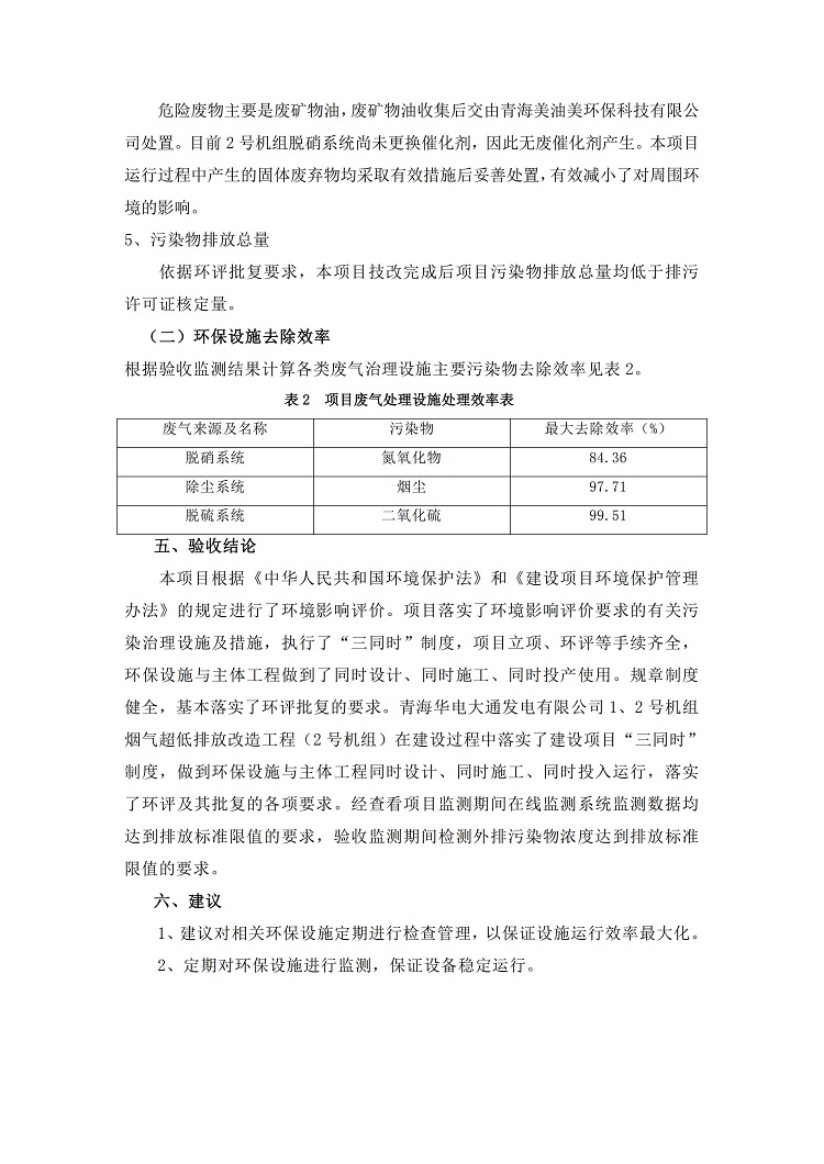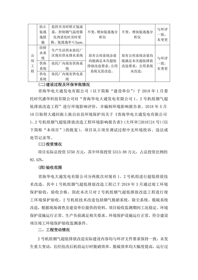 根據(jù)中華人民共和國國務(wù)院令第682號《國務(wù)院關(guān)于修改〈建設(shè)項目環(huán)境保護管理條例〉的決定》和《建設(shè)項目竣工環(huán)境保護驗收暫行辦法》(國務(wù)院令682號),青海華電大通發(fā)電有限公司1、2號機組煙氣超低排放改造工程(2號機組) (包括竣工環(huán)境保護驗收監(jiān)測報告表和驗收意見)公示如下。 一、項目名稱:青海華電大通發(fā)電有限公司1、2號機組煙氣超低排放改造工程(2號機組) 竣工環(huán)境保護驗收監(jiān)測報告表 二、地點:青海省西寧市大通縣寧張公路31公里處 三、建設(shè)單位:青海華電大通發(fā)電有限公司 四、建設(shè)內(nèi)容:2號機組煙氣超低排放改造,2號機組改造內(nèi)容為脫硫系統(tǒng)保留原脫硫裝置作為一級塔,新建二級合金托盤塔串聯(lián)吸收塔;對原“1+2”電袋復(fù)合除塵器的一電場電源進行改造,對布袋除塵器濾袋進行更換;對原脫硝系統(tǒng)選擇性催化還原法(SCR)脫硝工藝加裝備用催化劑,每層催化劑增加聲波吹灰器,優(yōu)化SCR反應(yīng)器入口導(dǎo)流板。 五、聯(lián)系人:馬世敏 六、聯(lián)系電 話:0971-6515411 七、公示時間:二〇二〇年四月二十九日至二〇二〇年五月二十八日 公示期間,對上述公示內(nèi)容如有異議,請以書面形式反饋,個人須署真實姓名,單位須加蓋公章。
