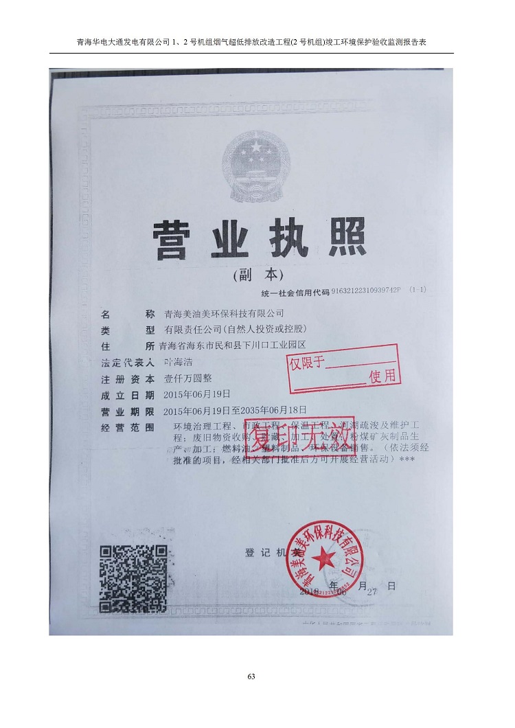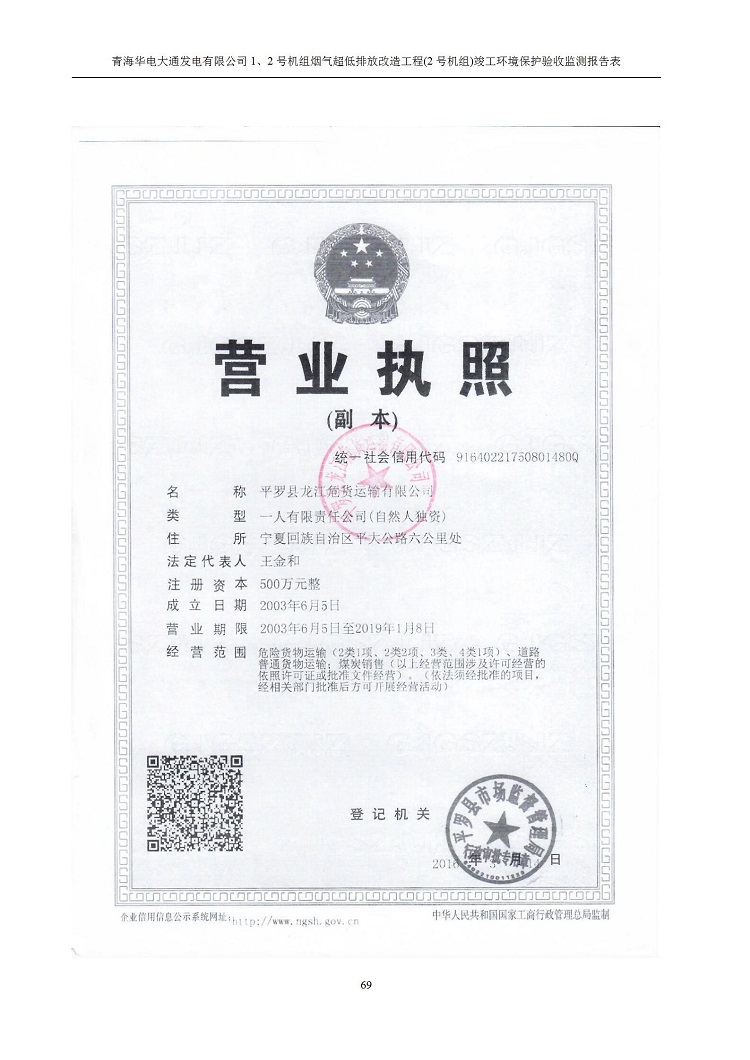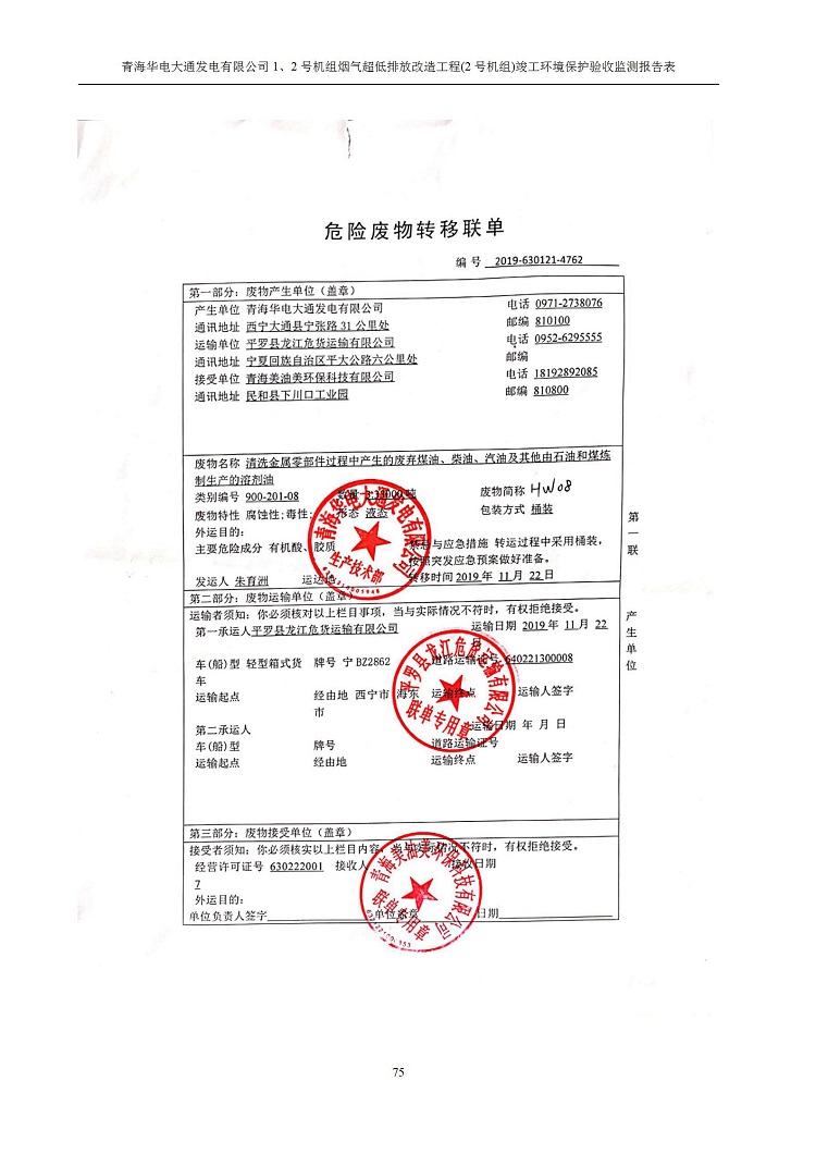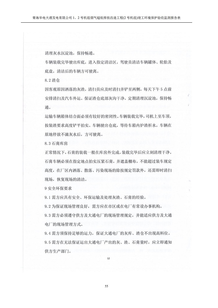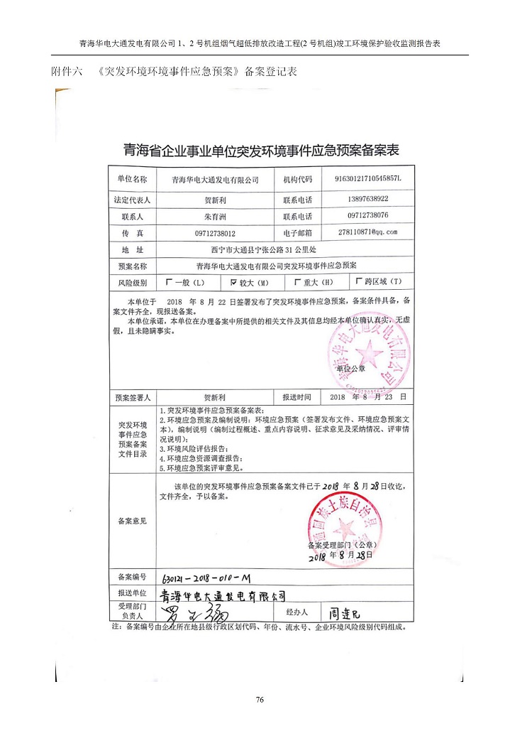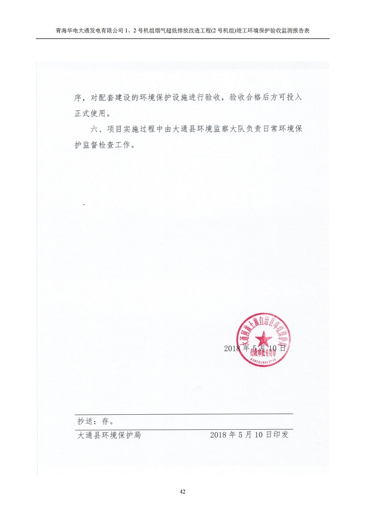 根據(jù)中華人民共和國國務(wù)院令第682號《國務(wù)院關(guān)于修改〈建設(shè)項目環(huán)境保護管理條例〉的決定》和《建設(shè)項目竣工環(huán)境保護驗收暫行辦法》(國務(wù)院令682號),青海華電大通發(fā)電有限公司1、2號機組煙氣超低排放改造工程(2號機組) (包括竣工環(huán)境保護驗收監(jiān)測報告表和驗收意見)公示如下。 一、項目名稱:青海華電大通發(fā)電有限公司1、2號機組煙氣超低排放改造工程(2號機組) 竣工環(huán)境保護驗收監(jiān)測報告表 二、地點:青海省西寧市大通縣寧張公路31公里處 三、建設(shè)單位:青海華電大通發(fā)電有限公司 四、建設(shè)內(nèi)容:2號機組煙氣超低排放改造,2號機組改造內(nèi)容為脫硫系統(tǒng)保留原脫硫裝置作為一級塔,新建二級合金托盤塔串聯(lián)吸收塔;對原“1+2”電袋復(fù)合除塵器的一電場電源進行改造,對布袋除塵器濾袋進行更換;對原脫硝系統(tǒng)選擇性催化還原法(SCR)脫硝工藝加裝備用催化劑,每層催化劑增加聲波吹灰器,優(yōu)化SCR反應(yīng)器入口導(dǎo)流板。 五、聯(lián)系人:馬世敏 六、聯(lián)系電 話:0971-6515411 七、公示時間:二〇二〇年四月二十九日至二〇二〇年五月二十八日 公示期間,對上述公示內(nèi)容如有異議,請以書面形式反饋,個人須署真實姓名,單位須加蓋公章。