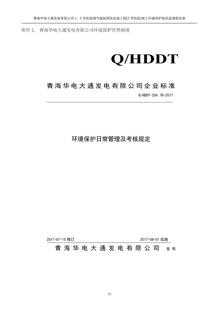青海華電大通發(fā)電有限公司1、2號機組煙氣超低排放改造工程(2號機組) 竣工環(huán)境保護驗收監(jiān)測報告表公示發(fā)布日期:(2020-4-29) 點擊次數(shù):2583 |