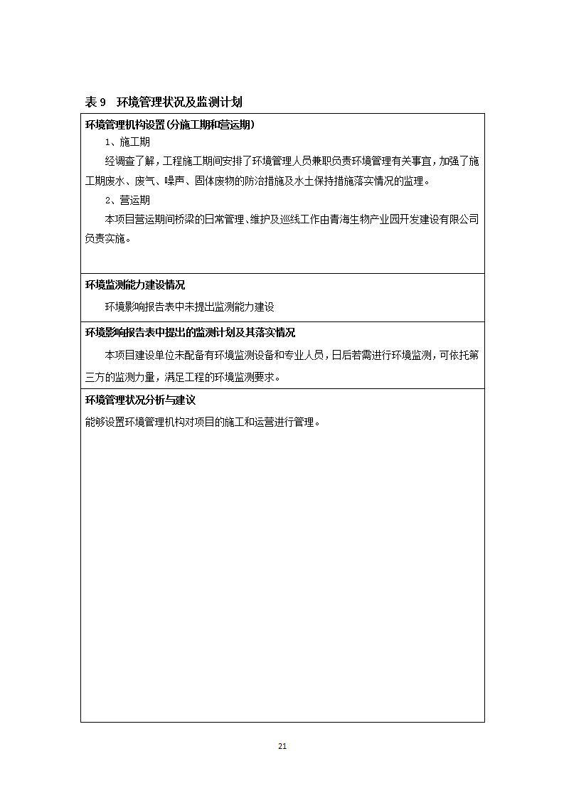 根據(jù)中華人民共和國(guó)國(guó)務(wù)院令第682號(hào)《國(guó)務(wù)院關(guān)于修改〈建設(shè)項(xiàng)目環(huán)境保護(hù)管理?xiàng)l例〉的決定》和《建設(shè)項(xiàng)目竣工環(huán)境保護(hù)驗(yàn)收暫行辦法》(國(guó)務(wù)院令682號(hào)),劉家溝1號(hào)橋梁(機(jī)電二路)建設(shè)項(xiàng)目竣工環(huán)境保護(hù)驗(yàn)收調(diào)查表,(包括竣工環(huán)境保護(hù)驗(yàn)收調(diào)查表和驗(yàn)收意見(jiàn))公示如下。 一、項(xiàng)目名稱:劉家溝1號(hào)橋梁(機(jī)電二路)建設(shè)項(xiàng)目竣工環(huán)境保護(hù)驗(yàn)收調(diào)查表 二、地點(diǎn):青海省西寧市城北區(qū)生物園區(qū) 三、建設(shè)單位:青海生物產(chǎn)業(yè)園開(kāi)發(fā)建設(shè)有限公司 四、建設(shè)內(nèi)容:本項(xiàng)目主要建設(shè)內(nèi)容為橋梁工程、接線路基等工程。項(xiàng)目南北走向,北起機(jī)電二路,南至寧張路,項(xiàng)目全長(zhǎng)150m. 五、聯(lián)系人:張工 六、聯(lián)系電 話:0971-6515411 七、公示時(shí)間:二〇二〇年六月二日至二〇二〇年六月三十日 公示期間,對(duì)上述公示內(nèi)容如有異議,請(qǐng)以書(shū)面形式反饋,個(gè)人須署真實(shí)姓名,單位須加蓋公章。 |