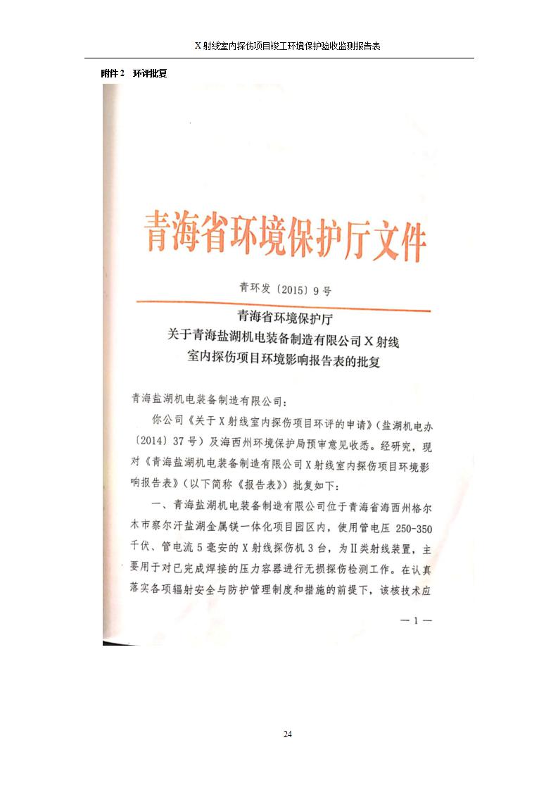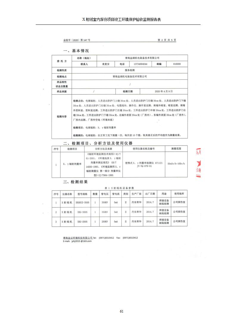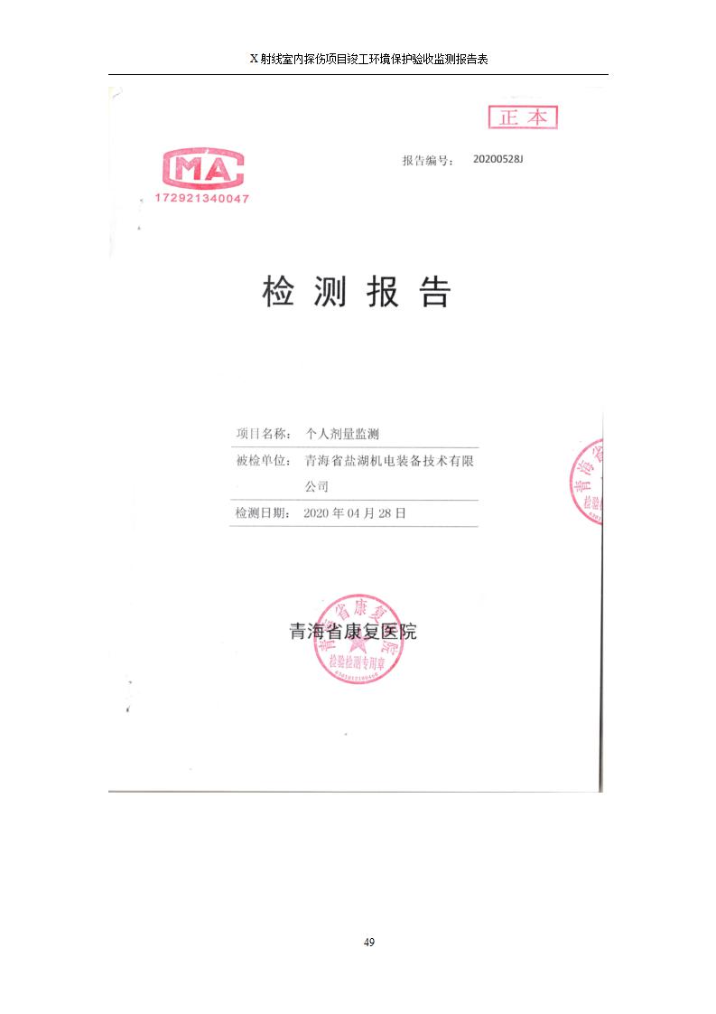 青海鹽湖機(jī)電裝備技術(shù)有限公司X射線室內(nèi)探傷項(xiàng)目竣工環(huán)境保護(hù)驗(yàn)收監(jiān)測報告表公示發(fā)布日期:(2020-7-10) 點(diǎn)擊次數(shù):3356 |